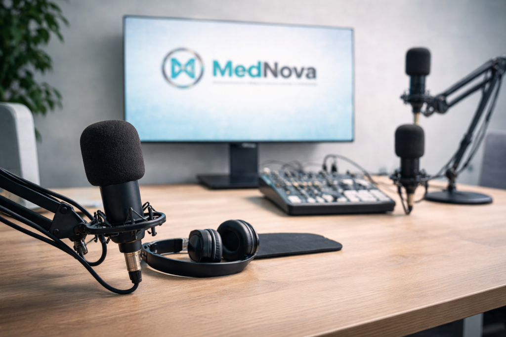 En MedNova contamos con un estudio propio de streaming y podcast, donde realizamos contenidos audiovisuales orientados a la salud, la prevención y la actualización médica, con la participación de profesionales invitados.